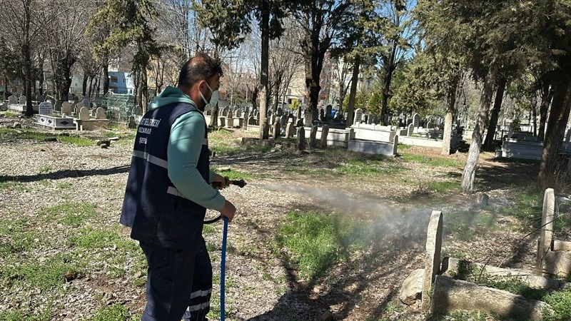 Siirt Belediyesi Park ve Bahçeler Müdürlüğü, şehir genelindeki mezarlıklarda yabani ot temizliği, haşere ilaçlaması ve genel bakım çalışmalarına başladı.