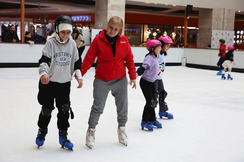 Sportif, eğitsel ve sanatsal aktivitelerle tatilin keyfini doyasıya çıkaran öğrenciler, Eyüp Park AVM’de bulunan Eyüpsultan Belediyesi Buz Pisti’nde buz pateni yaparak eğlenceli anlar yaşıyor.