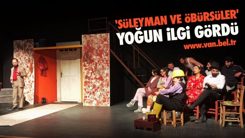 Van Büyükşehir Belediyesi'nin 'Tiyatro Günleri' kapsamında sahnelenen 'Süleyman ve Öbürsüler’ isimli tiyatro oyunu sanat severlerden büyük ilgi gördü. Van'da kentin kültür-sanat hayatına katkıda bulunmak üzere Büyükşehir Belediyesi tarafından başlatılan ücretsiz tiyatro günleri devam ediyor. Bu kapsamda Kültür ve Sosyal İşler Dairesi Başkanlığı Hacıbekir Mahallesinde bulunan Van Büyükşehir Belediyesi Kültür Merkezinde 'Süleyman ve Öbürsüler' isimli tiyatro oyunu sahnelendi. Tiyatro oyunu, vatandaşlar tarafından büyük beğeni aldı.