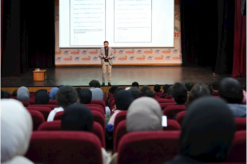 Özellikle paragraf sorularını çözerken nelere dikkat edilmesi gerektiğini kendine has üslubuyla anlatan Kaya, odaklanmanın ne kadar önemli olduğunun altını çizdi. Sık sık öğrencileri sahneye alan eğitmen, soru çözüm taktiklerini de gençlerle paylaştı. Araştırmacı eğitmen Hamza Kaya’nın verdiği pratik bilgiler, gençlerden de tam not aldı.