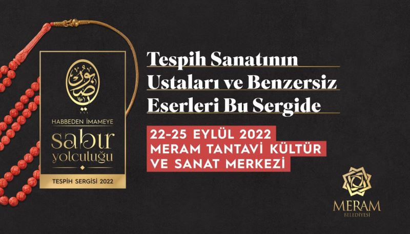 Meram Belediyesi Tantavi Kültür ve Sanat Merkezi, ilgi çekici bir sergiye daha ev sahipliği yapmaya hazırlanıyor. Kültür ve sanat merkezi, 22-25 Eylül tarihleri arasında tespih severleri buluşturacak ‘Habbeden İmameye Sabır Yolculuğu’ Tespih Sergisi için kapılarını açacak.