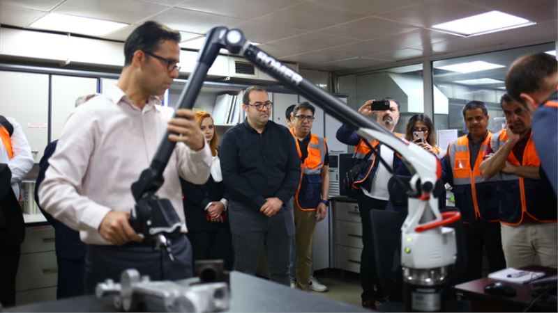 Heyet, İzmir’deki ikinci günlerinde ise ESHOT Genel Müdürlüğü Gediz Atölyesi’ni ziyaret etti. ESHOT Genel Müdürü Erhan Bey, Genel Müdür Yardımcıları Kader Sertpoyraz ve Kerim Özer’in ağırladığı heyete, elektrikli otobüs filosunun yanı sıra atölye ve garaj binalarının çatılarına kurulan Güneş Enerji Santrali (GES) hakkında da bilgiler verildi. Heyet, ESHOT Genel Müdürlüğü’nün işletme için ihtiyaç duyduğu ölçme, kontrol ve tersine mühendislik çalışmalarının yürütüldüğü laboratuvarı da ziyaret etti.