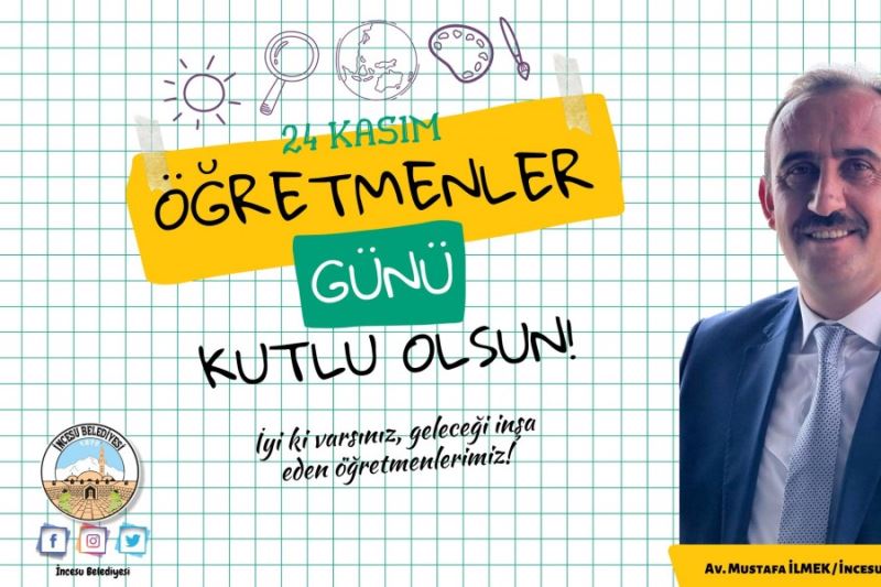 Bu vesileyle; başta Başöğretmen Gazi Mustafa Kemal ATATÜRK olmak üzere ebediyete intikal eden tüm öğretmenlerimizi rahmet ve minnetle anarken kutsal görevlerinin bilinciyle, bugüne kadar olduğu gibi bundan sonrada aynı şevk ve heyecanla vazifelerini yerine getireceklerine inandığımız tüm öğretmenlerimizin 24 Kasım Öğretmenler Günü’nü kutluyor sağlık mutluluk ve başarılar diliyorum.