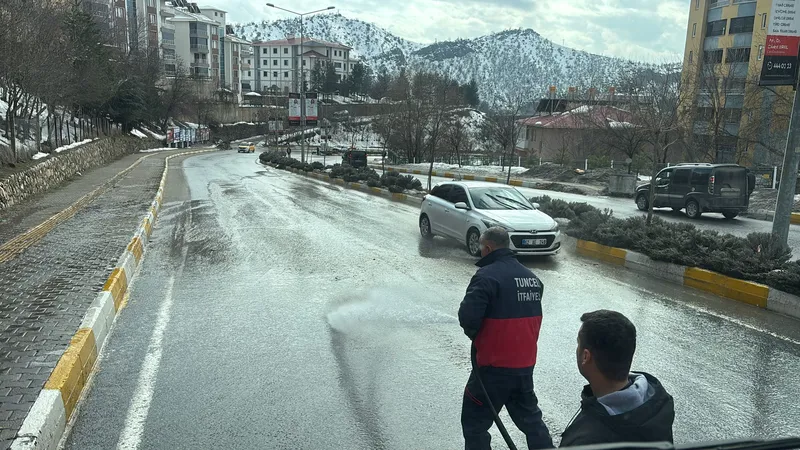 Kar yağışının ardından başlayan erime ve yağmurlar, yol yüzeylerinde kar, tuz ve sudan oluşan kalın bir çamur tabakası birikmesine neden oldu. Bu tabakayı kaldırmak için Tunceli Belediyesi, itfaiye ve temizlik ekiplerini sahaya sürerek eş zamanlı ve kapsamlı bir çalışma başlattı.