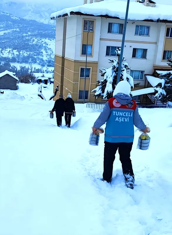 Zorlu hava ve arazi koşullarına rağmen, Tunceli Belediyesi aşevi dağıtım ekiplerinin özverili çalışmaları sayesinde gün içerisinde ulaşımın mümkün olduğu tüm noktalara yemek dağıtımı başarıyla gerçekleştirildi.