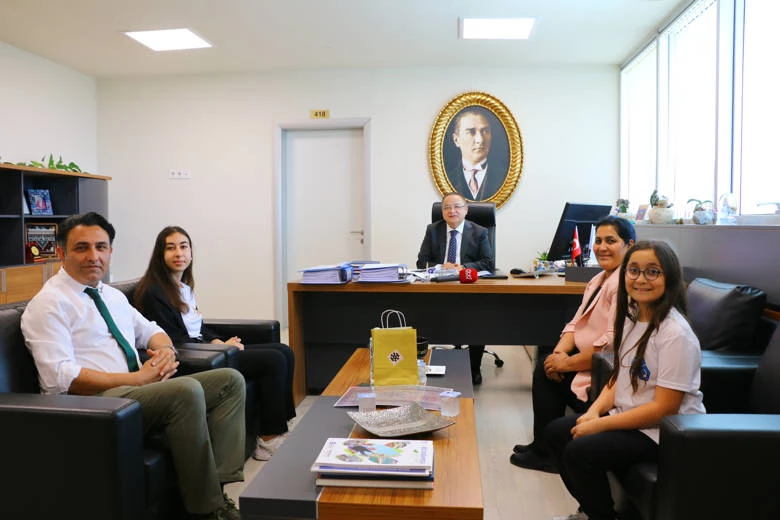 Orta Asya’dan günümüze tarihi ve geleneksel Türk motiflerini araştırarak dijital müze çatısı altında toplayan bölge birincisi öğrenciler Ecem Gizem Cangiz, Dilara Haldan ve Minerva Candemir, Antalya Büyükşehir Belediyesi Genel Sekreter Yardımcısı Mustafa Gürbüz’ü ziyaret etti. Yarışma ve projenin detaylarıyla ilgili Gürbüz’e bilgi veren öğrenciler, desteklerinden dolayı Antalya Büyükşehir Belediye Başkanı Muhittin Böcek için hazırlanan teşekkür plaketi sundu.