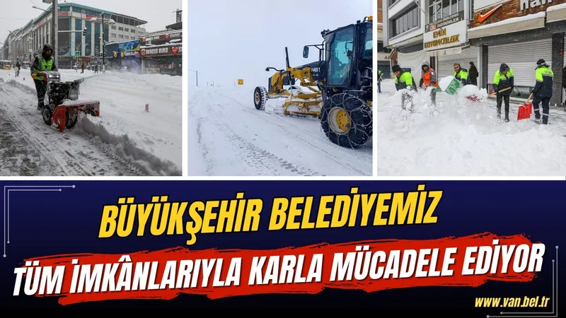 Van Büyükşehir Belediyesi, yoğun kar yağışına karşı mücadele çalışmalarını 14 şantiyede, 257 araç ve 600 personelle sürdürüyor.