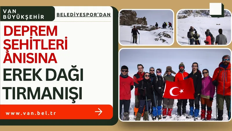 Van Büyükşehir Belediyespor Kulübü Dağcılık Ekibi, 6 Şubat 2023'te Kahramanmaraş merkezli depremlerde hayatını kaybedenleri anmak için 3 bin 204 metre yüksekliğindeki Erek Dağı'na kış tırmanışı düzenledi.