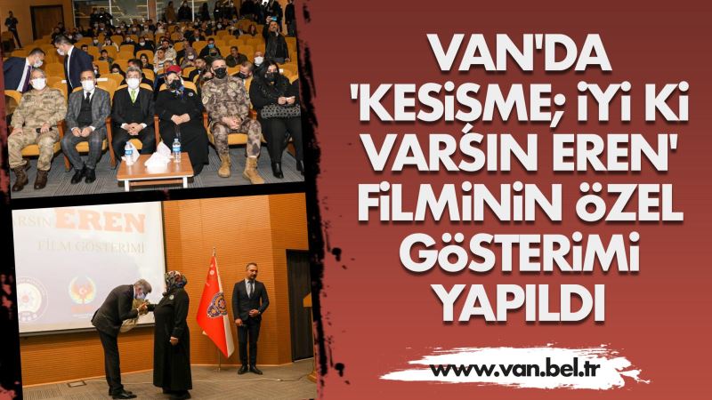 Trabzon'un Maçka ilçesinde 11 Ağustos 2017'de teröristlerle kahraman Mehmetçiğin girdiği çatışmada şehit olan Eren Bülbül ve Astsubay Kıdemli Başçavuş Ferhat Gedik'in öyküsünün anlatıldığı TRT Ortak Yapımı "Kesişme; İyi ki Varsın Eren" filminin özel gösterimi Van'da yapıldı. İl Emniyet Müdürlüğü konferans salonundaki gösterimi Vali Mehmet Emin Bilmez, AK Parti Van Milletvekili Abdulahat Arvas, Cumhuriyet Başsavcısı Oğuzhan Dönmez, Jandarma Asayiş Kolordu Komutanı Tümgeneral Hüseyin Kurtoğlu, İl Emniyet Müdürü Atanur Aydın, Van Büyükşehir Belediyesi Genel Sekreteri Mehmet Fatih Çelikel, vali yardımcıları, şehit Eren Bülbül'ün annesi Ayşe Bülbül, Astsubay Kıdemli Başçavuş Ferhat Gedik'in eşi Cemile Gedik, şehit aileleri ve gaziler izledi. Gösterim sonrası açıklama yapan Vali ve Büyükşehir Belediye Başkan Vekili Mehmet Emin Bilmez, "Kesişme; İyi ki Varsın Eren" filminin duygu yüklü olduğunu söyledi. Filmin birliği, beraberliği ve kardeşliği pekiştirdiğini belirten Vali Bilmez, şunları kaydetti: "Bu topraklarda kardeşçe barış, huzur, güven içinde yaşamımızı istemeyenler, buldukları maşalarla huzurumuzu kaçırmaya çalışacaklar. Bunu herkes bilsin ki Ferhat komutandaki insanlık sevgisi, şehit Eren'deki memleket aşkı bu nefreti ve terörü ilelebet bitirecektir. Bugün 14 Şubat Dünya Sevgililer Günü. Bugün aynı zamanda memleketini seven, şehadet şerbeti içenlerin de günüdür. Bu sevgi tüm şerleri, kötülükleri Allah'ın izniyle yok edecek, birliğimizi, beraberliğimizi, kardeşliğimizi de pekiştirecektir. Başta şehidimiz Eren Bülbül, Ferhat Gedik, filmde adı geçen Fethi Sekin, Ömer Halis Demir olmak üzere tüm şehitlerimizi rahmetle anıyorum. Hiç kimse birliğimizi, beraberliğimizi, kardeşliğimizi, devletiyle milletiyle bütünleşmiş bu toplumuzun huzurunu bozamayacak. Rabbim şer odaklarının yaptığı tuzağa kendilerini düşürsün." Şehit Eren Bülbül'ün annesi Ayşe Bülbül ise filmi izlerken çok duygulandığını, göz yaşlarını tutamadığını anlattı. Oğlu Eren'in şehitliğiyle gurur duyduğunu ifade eden Anne Ayşe Bülbül, "Evladımın filmini izlerken göğsüm kapardı. Evladım 15 yaşında şehit oldu. Eren'in annesi olduğum için mutluyum. Evladımın unutulmaması için filmi yapan herkese teşekkür ederim. Tüm şehitlerimize Allah'tan rahmet, yakınlarına, sevdiklerine sabırlar diliyorum." diye konuştu. Program yapılan konuşmaların ardından çekilen hatıra fotoğraflarıyla sona erdi.