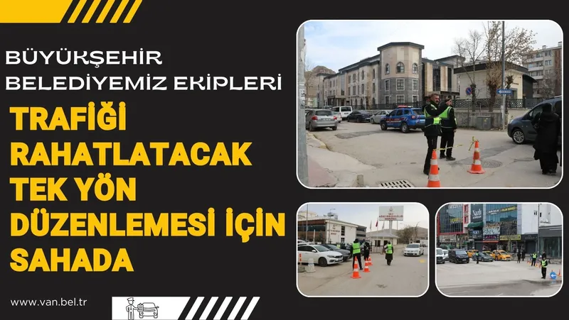 Van Büyükşehir Belediyesi, kent genelinde yaşanan trafik yoğunluğunu azaltmak için harekete geçti. Ulaşım Dairesi Başkanlığı, belirlenen güzergâhlara tek yön tabelaları yerleştirirken, Zabıta Dairesi Başkanlığı'na bağlı Ulaşım ekipleri de sahada yönlendirme ve koordinasyon çalışmalarını yürütüyor.