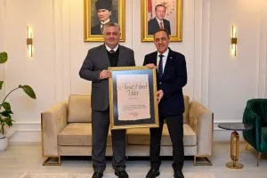 Ziyaretin anısına Başkan Mehmet Gürel, Vali Usta’ya İbrahim Müteferrika Kağıt Müzesi atölyelerinde geleneksel yöntemlerle üretilen Yalova Kağıdı’na adının yazılı olduğu kağıt tablo hediye etti.