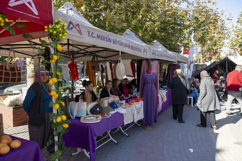 Mersin Büyükşehir Belediyesi Kadın ve Aile Hizmetleri Dairesi Başkanlığı'na bağlı Tömük Kadın ve Çocuk Atölyesi kursiyerleri, Yerli Malı Haftası'nı coşkuyla kutladı. Tömük Çarşısı'nda düzenlenen etkinlikte, kursiyerler, eğitmenler ve gönüllülerin katkılarıyla hazırlanan yöresel lezzetler vatandaşlarla paylaşıldı.