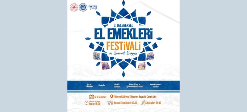Yıldırım Belediyesi, YIL-MEK, Kadın Eğitim ve Girişimcilik Merkezi ve Kadın Kooperatifleri bünyesindeki kursiyerlerin bir yıl boyunca ürettikleri el emeklerini 6-9 Temmuz tarihlerinde Yıldırım Külliyesi Bahçesinde düzenlenecek 3. Geleneksel El Emekleri Festivali’nde sergileyecek. İpek Koza, Keçe, Nah-t, Kat-ı, Ahşap Yakma, Geri Dönüşümden El Sanatları, Kağıt Rölyef, Ebru, Porselen Çiçek, Seramik, Filografi, Deri Tasarım, Resim, Çini gibi farklı branşlarda onlarca eserin sergileneceği festival kapsamında ayrıca söyleşiler, çocuk atölyeleri ve tiyatro gösterileri sergilenecek.
